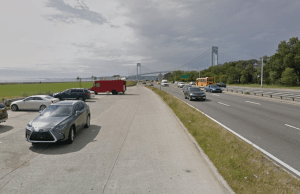 Morris is driving along the Belt Parkway, which runs along the west and southern shores of Brooklyn. There are a few rest stops along the parkway that lead onto small parks along the shore or, in a couple of cases, actual beaches. At the time this was written, which was in the early 2000s, these rest stops were not terribly well maintained. From what I’ve seen, things have improved slightly since then, although I’ve still seen a lot of litter on the parking lot and beaches, especially in the summer months.